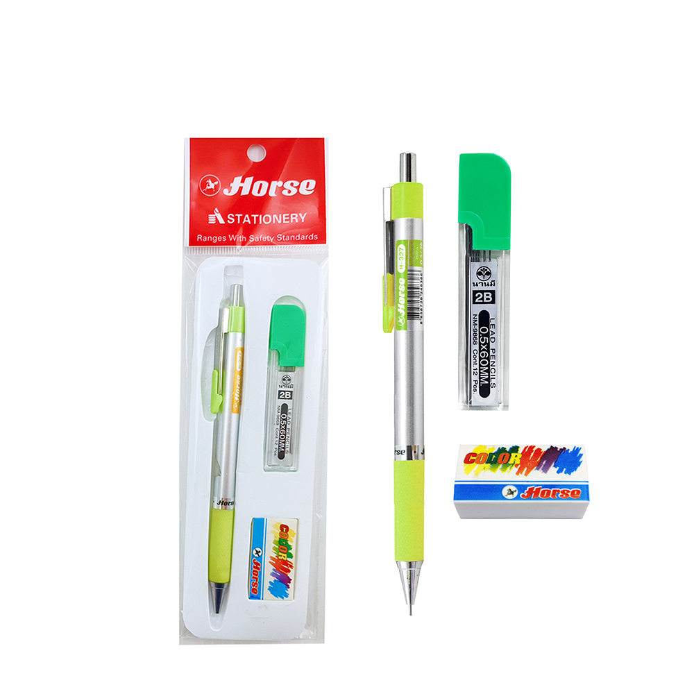 ProductID 0221216 สถานะสินค้า สินค้าหมดชั่วคราว ตราม้า ชุดดินสอกด H-327 ยางลบ ไส้ดินสอ ราคาพิเศษสำหรับสมาชิกหรือติดต่อเรา Be the first to review this product ฿29.00 ราคาไม่รวมภาษี จำนวน/Quantity: ชุด Add to cart Email a friend Add to compare list Add to wishlist DetailsExisting reviews ชุดดินสอกดตราม้า มียางลบ ตัวด้ามผลิตจากพลาสติก อย่างดี แข็งแรงทนทาน ตัวด้ามกระทัดรัด จับถนัดมือ คุณภาพสินค้าเกรด A ภายในชุดประกอบด้วย:ดินสอกด 1 ด้าม ยางลบ 1 ก้อน ไส้ดินสอ 2B 1 หลอด คละ 4 สี Be the first to review this product