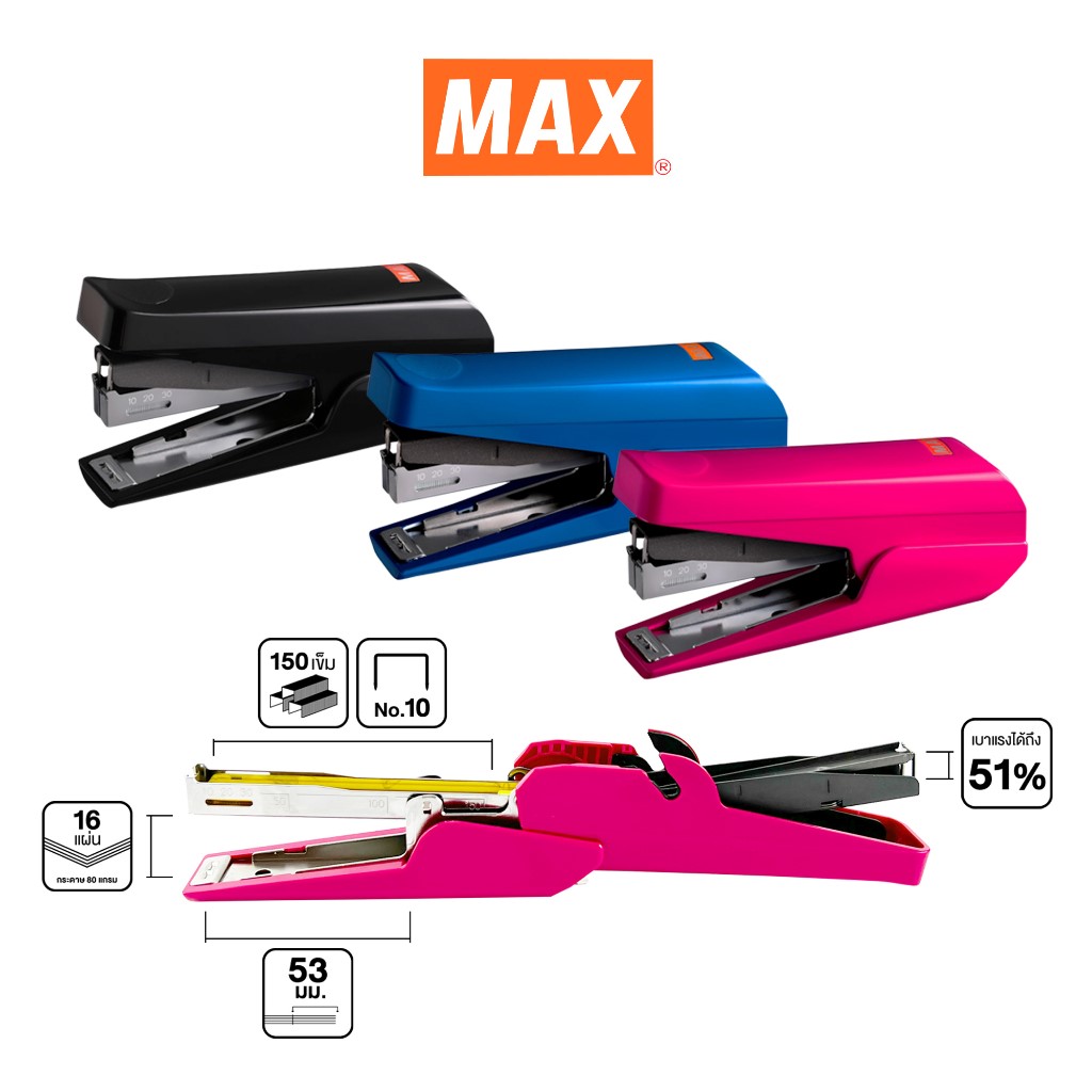 ProductID 0410166 สถานะสินค้า สินค้าพร้อมส่ง แม็กซ์ เครื่องเย็บ MAX HD-10TLK คละสี ราคาพิเศษสำหรับสมาชิกหรือติดต่อเรา Be the first to review this product ฿395.00 ราคาไม่รวมภาษี จำนวน/Quantity: เครื่อง Add to cart Email a friend Add to compare list Add to wishlist DetailsExisting reviews ออกแบบรูปทรงกะทัดรัด จับกระชับมือกดเย็บได้ง่าย ช่วยคุณเบาแรงเย็บลงได้ถึง 51% ไม่เมื่อยมือแม้ใช้งานต่อเนื่อง ทั้งยังเย็บได้รวดเร็ว และเรียบแบนแนบสนิทกับกระดาษ ตัวเครื่องผลิตจากเหล็ก หุ้มด้วยพลาสติกคุณภาพดี แข็งแรง ทนทาน ใช้งานได้นาน สามารถเก็บลวดเย็บเบอร์ 10 ได้ถึง 3 แถว (150 เข็ม) เย็บกระดาษได้หนา 16 แผ่น (70 แกรม) เหมาะใช้กับเอกสารทั่วไป ( มาพร้อมที่ถอนลวดเย็บในตัว ) มีให้เลือก 3สี ชมพู น้ำเงิน ดำ Be the first to review this product