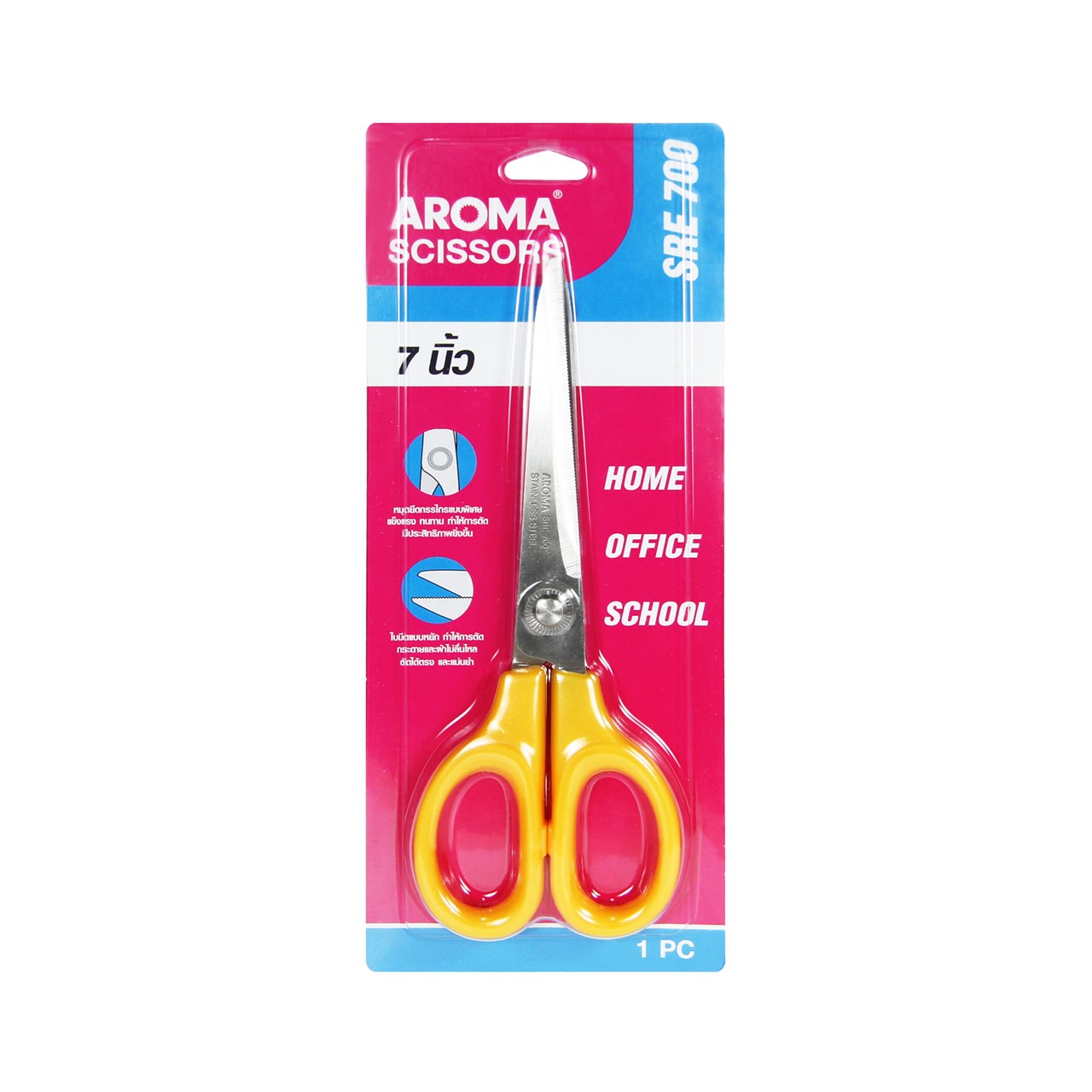 ProductID 0418068 สถานะสินค้า สินค้าพร้อมส่ง กรรไกร อโรม่า (AROMA) SRE 700 ราคาพิเศษสำหรับสมาชิกหรือติดต่อเรา Be the first to review this product ฿52.00 ราคาไม่รวมภาษี จำนวน/Quantity: อัน Add to cart Email a friend Add to compare list Add to wishlist DetailsExisting reviews กรรไกรขนาด 7 นิ้ว ผลิตจากสแตนเลสคุณภาพดี แข็งแรง ไม่เป็นสนิม ใบมีดหนา 0.25 มม. หมุดยึดกรรไกรแบบพิเศษ ทนทาน ใบมีดแบบ Serrated Edge (ฟันปลาพิเศษ) เพิ่มประสิทธิภาพความแม่นยำ จึงดัดได้ตรงไม่เลื่อนไหล ตัวด้ามทำจากพลาสติก ABS แข็งแรงทนทาน จับกระชับมือสะดวกต่อการใช้งาน ใช้ตัดกระดาษ ผ้า และอื่นๆ เพื่อยืดอายุการใช้งาน ควรหลีกเลี่ยงการตกกระแทก และไม่ควรใช้ตัดวัสดุที่หนามาก กรรไกรเป็นของมีคม ควรวางให้ห่างจากมือเด็ก ผลิตในประเทศจีน ด้วยวัตถุดิบอย่างดี เทคโนโลยีจากญี่ปุ่น ขนาดกรรไกร 6.5×17.5×1 ซม (กxยxส) น้ำหนัก 65 กรัม Be the first to review this product