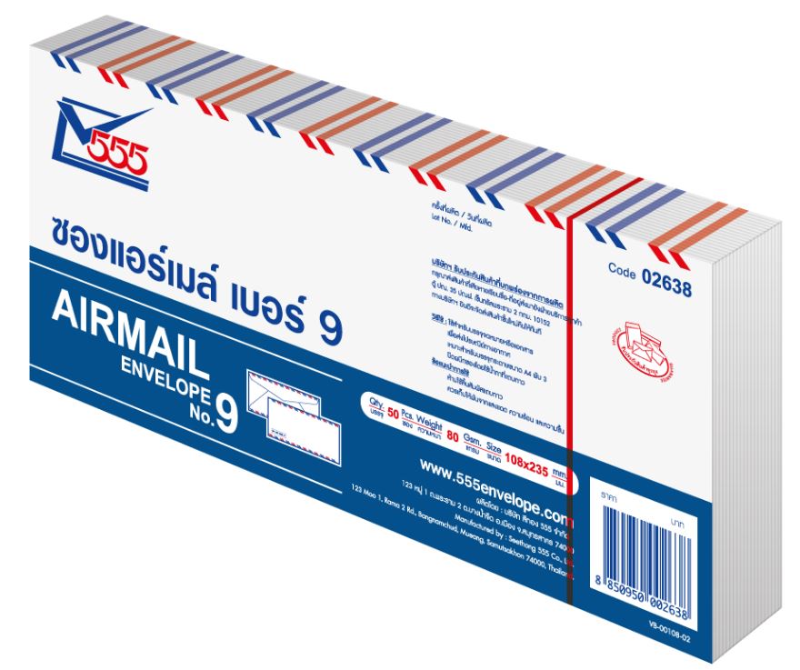 ProductID 0129066 สถานะสินค้า สินค้าพร้อมส่ง ซองแอร์เมลบาง เบอร์ 9 (50 ซอง) 555 ราคาพิเศษสำหรับสมาชิกหรือติดต่อเรา Be the first to review this product ฿63.00 ราคาไม่รวมภาษี จำนวน/Quantity: แพ็ค Add to cart Email a friend Add to compare list Add to wishlist DetailsExisting reviews ซองแอร์เมลบาง เบอร์ 9 (50 ซอง) 555 Be the first to review this product Customers who bought this item also bought ลวดเย็บกระดาษ MAX 10-1M ฿8.25 ปากกาเคมี 2หัว ตราม้า น้ำเงิน ฿9.50 สมุดปกอ่อน Excel Choice #940, 16.5 x 24 ซม., 60... ฿8.00 ควอนตั้มปากกาเน้นข้อความ QH710 สีเหลือง (N) ฿15.00 เทปลบคำผิด ตราม้า H-925 ฿30.00 ตลับผ้าหมึก Epson SO15141 LQ7753, LQ300,300+,800 ฿150.00 < >