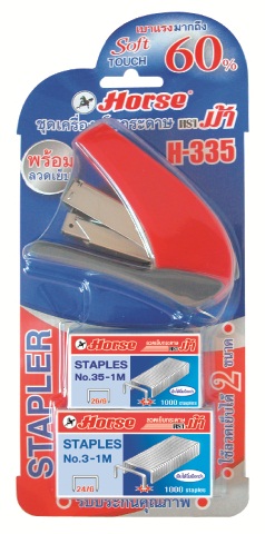 ProductID 0410074 สถานะสินค้า สินค้าพร้อมส่ง เครื่องเย็บกระดาษ ตราม้า H-335 + ลวด ราคาพิเศษสำหรับสมาชิกหรือติดต่อเรา Be the first to review this product ฿155.00 ราคาไม่รวมภาษี จำนวน/Quantity: เครื่อง Add to cart Email a friend Add to compare list Add to wishlist DetailsExisting reviews เย็บง่าย เบาแรงขึ้นถึง 60% ไม่ติดขัดเวลาใช้งาน มีปุ่มกดด้านหลังเครื่องเพื่อเลื่อนรางบรรจุลวด พร้อมลวดเย็บเบอร์ 3-1 M และเบอร์ 35-1 M 1 กล่อง เย็บได้หนา 25 แผ่น Be the first to review this product