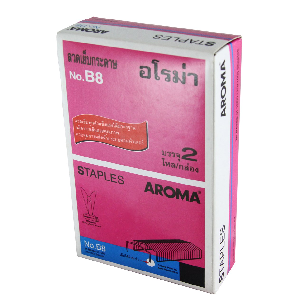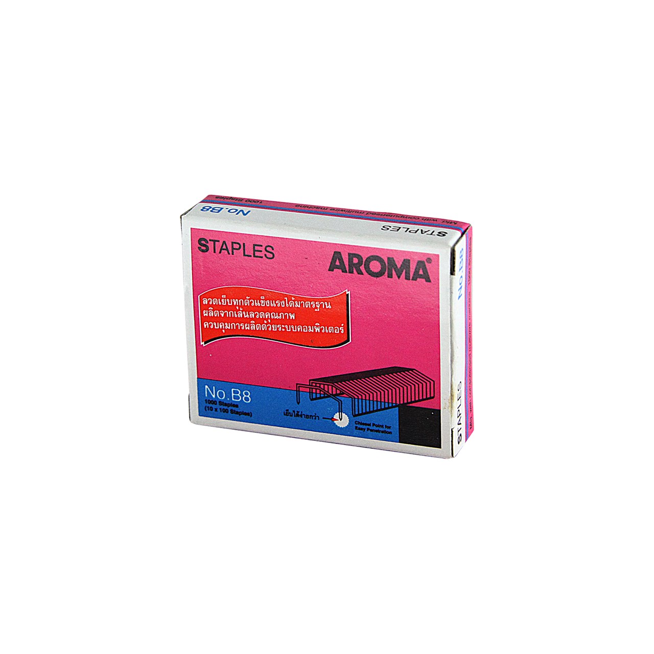 ProductID 0412082 สถานะสินค้า สินค้าหมดชั่วคราว ลวดเย็บกระดาษ อโรม่า (AROMA) #B8 ราคาพิเศษสำหรับสมาชิกหรือติดต่อเรา Be the first to review this product ฿8.50 ราคาไม่รวมภาษี จำนวน/Quantity: ก้อน Add to cart Email a friend Add to compare list Add to wishlist DetailsExisting reviews ผลิตจากเส้นลวดคุณภาพดี ควบคุมด้วยระบบคอมพิวเตอร์ แข็งแรง ได้มาตรฐาน เย็บกระดาษได้หนา 25 แผ่น (70 แกรม) บรรจุ 1,000 เข็ม/กล่อง ขนาดลวดเย็บ 11มม x 8มม (กxส) ผลิตในประเทศอินเดีย Be the first to review this product