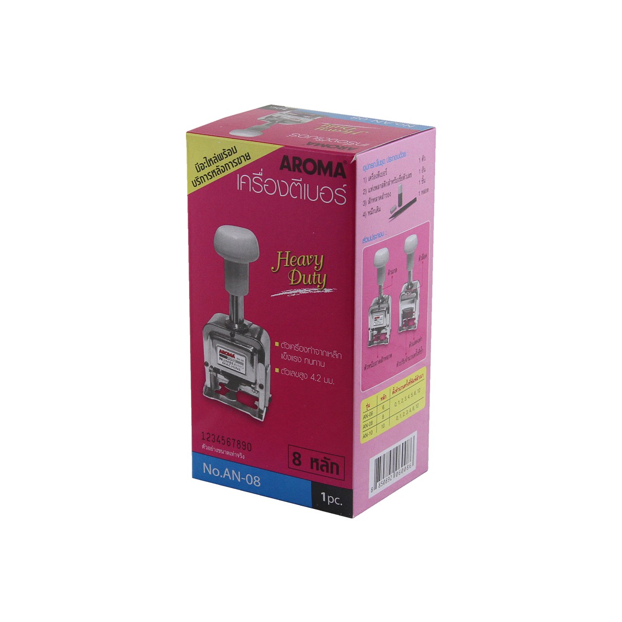 ProductID 0422030 สถานะสินค้า สินค้าพร้อมส่ง เครื่องตีเบอร์ อโรม่า (AROMA) AN-08 8 หลัก ราคาพิเศษสำหรับสมาชิกหรือติดต่อเรา Be the first to review this product ฿710.00 ราคาไม่รวมภาษี จำนวน/Quantity: เครื่อง Add to cart Email a friend Add to compare list Add to wishlist DetailsExisting reviews เครื่องตีเบอร์ หรือเครื่องรันนิ่ง นัมเบอร์ ตัวเลข 8 หลัก โครงสร้างผลิตจากโลหะคุณภาพ แข็งแรง ทนทาน ไม่เป็นสนิม ใช้งานง่าย มีอะไหล่ไว้บริการทุกชิ้น ตัวเลขสูง 4.8 มม. จำนวนครั้งที่พิมพ์สำเนา 0, 1, 2, 3, 4, 5, 6, 12 ควรใช้หมึกเติม คุณภาพ หมึกบางชนิดอาจทำให้เกิดความเสียหายกับเครื่องได้ ขนาดสินค้า 6.5x5x14.5 ซม.(กxยxส) น้ำหนัก 397 กรัม Be the first to review this product Customers who bought this item also bought ตราช้างลวดเย็บกระดาษบิ๊กบูม No.10 (1x24) ฿5.25 ยางลบดินสอ เพนเทล (Pentel) ZEH03 ฿12.00 เทปลบคำผิด ทอมโบว CT-CF5 (แพ็ค 3) ฿145.00 ควอนตั้มปากกาเน้นข้อความ QH710 สีส้ม (N) ฿15.00 ควอนตั้มปากกาเน้นข้อความ QH710 สีเหลือง (N) ฿15.00 ถาดเอกสาร ออร์ก้า L-3, 3 ชั้น, เทาทึบ ฿235.00 < >