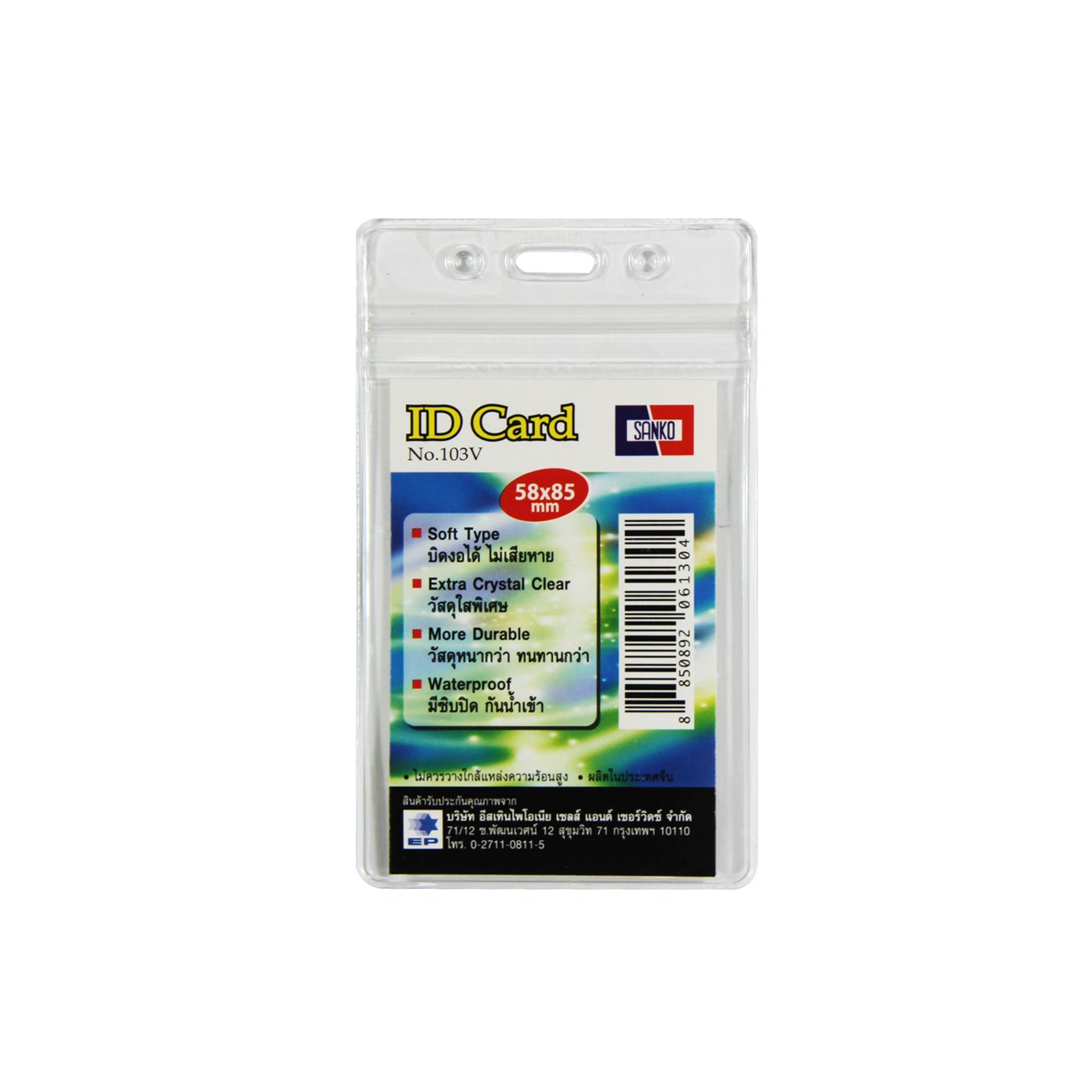 ProductID 0432077 สถานะสินค้า สินค้าพร้อมส่ง ซอง+ซิปใส่ป้ายชื่อ SANKO 103V ใส ราคาพิเศษสำหรับสมาชิกหรือติดต่อเรา Be the first to review this product ฿68.00 ราคาไม่รวมภาษี จำนวน/Quantity: แพ็ค Add to cart Email a friend Add to compare list Add to wishlist DetailsExisting reviews ผลิตจาก PVC ชนิดใสพิเศษ หนา ทนทานกว่า บิดงอได้ ไม่เสียหาย แถบด้านบนโปร่งแสง เจาะรูมาตรฐาน ใช้งานร่วมกับสายคล้องหรือคลิปหนีบบัตรทั่วไปได้ ซิปล็อค เปิด-ปิด ช่วยป้องกันน้ำและความชื้นได้ดี ชนิด : แนวตั้ง สำหรับบัตรขนาด 5.8×8.5 ซม. ขนาดสินค้า (กว้างxยาว) : 7×11.5 ซม. ความหนา 0.4 มม. (400 ไมครอน) Be the first to review this product Customers who bought this item also bought แฟ้มพับ 300 แกรม A4 สีชมพู ฿5.75 กระดาษถ่ายเอกสาร Idea Max 70g A4 ฿95.00 ปากกาเคมี 2หัว ตราม้า น้ำเงิน ฿9.50 ลวดเย็บกระดาษ MAX 10-1M ฿8.25 ลวดเสียบกระดาษกลมชุบ ตราม้า #1 ฿69.00 ควอนตั้มปากกาเน้นข้อความ QH710 สีเหลือง (N) ฿15.00 < >