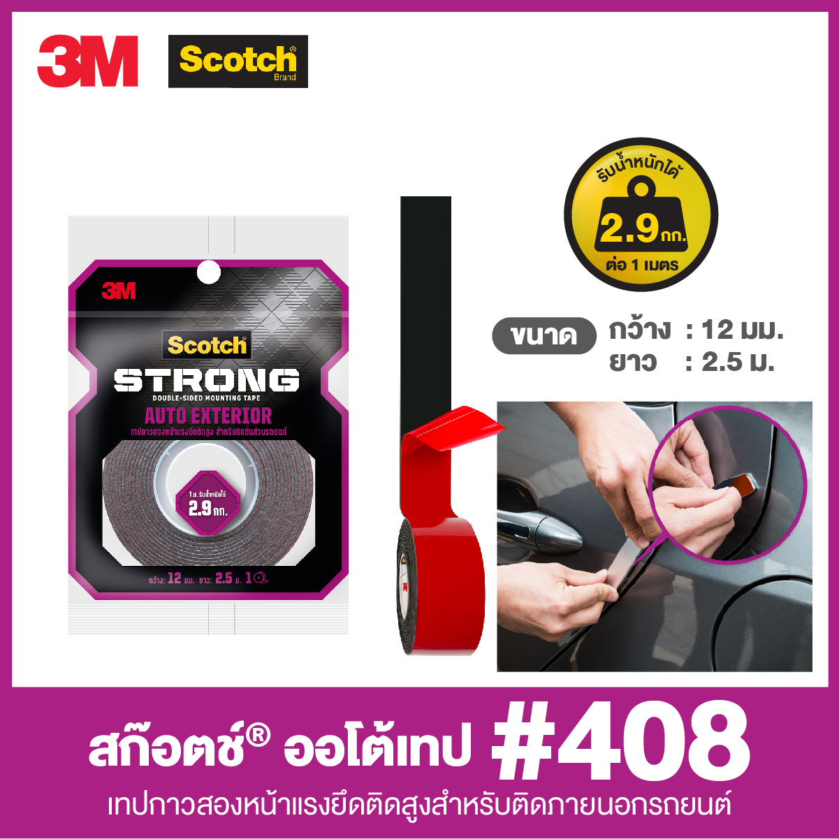 ProductID 0522050 สถานะสินค้า สินค้าพร้อมส่ง สก๊อตช์ ออโต้เทป 408 เทปโฟม2หน้าแรงยึดติดสูง สำหรับรถยนต์, 0.5นิ้วX2.5ม. ราคาพิเศษสำหรับสมาชิกหรือติดต่อเรา Be the first to review this product ฿70.00 ราคาไม่รวมภาษี จำนวน/Quantity: ม้วน Add to cart Email a friend Add to compare list Add to wishlist DetailsExisting reviews เนื้อเทปกาวอะครีลิค ชนิดให้แรงยึดติดสูงพิเศษ เนื้อเหนียว เนื้อเทปมีความยืดหยุ่น ทนต่อสภาพอากาศแวดล้อม ใช้สำหรับติดชิ้นส่วนประดับยนต์ เหมาะสำหรับพื้นผิวเรียบและพื้นผิวสะอาดภายนอกรถยนต์ รับแรงในแนวดิ่งได้ดี เนื้อเทปสีเทา เนื้อโฟมหนา 0.8 มม. การรับน้ำหนัก 1 เมตร รับน้ำหนักได้ 2.9 กก. และ 1 กก./ความยาวเทป 34.4 ซม. เทปหน้ากว้าง 12 มม. Be the first to review this product Customers who bought this item also bought ตราช้างแฟ้มสันกว้าง 120A4 ดำ ฿68.00 ลวดเย็บกระดาษ MAX 10-1M ฿8.25 กระดาษถ่ายเอกสาร Idea Max 70g A4 ฿95.00 ปากกาลูกลื่นเจล g'SOFT Fizz 101, 0.38 มม. แดง ฿12.00 กระดาษต่อเนื่อง General Computer 15 x 11" 1 ชั้... ฿670.00 ปากกาลูกลื่นเจล g'SOFT Fizz 101, 0.38 มม. น้ำเงิน ฿12.00 < >