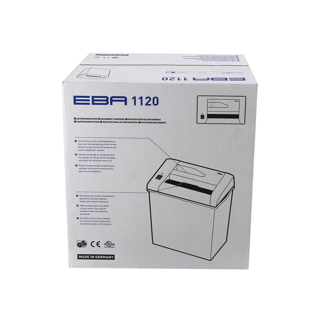 ProductID 0721006 สถานะสินค้า สินค้าหมดชั่วคราว เครื่องทำลายเอกสาร EBA 1120 S สินค้าสั่งซื้อพิเศษ (by order) Be the first to review this product ฿14,000.00 ราคาไม่รวมภาษี จำนวน/Quantity: เครื่อง Add to cart Email a friend Add to compare list Add to wishlist DetailsExisting reviews • ความกว้างของช่องใส่เอกสาร 220 มม. • ลักษณะของเอกสารที่ทำลายแล้ว เป็นเส้นตรง (Straight-cut) • ขนาดของเอกสารที่ทำลายแล้ว 4 มม. • จำนวนแผ่นในการตัด 11-13 แผ่น/ครั้ง (A4/70 แกรม) • ความเร็วในการตัด 3.6 เมตร/นาที • มีสวิตช์ ปิด-เปิด และถอยหลังในกรณีกระดาษติด • สามารถย่อยลวดเย็บกระดาษ,คลิปเสียบกระดาษ และบัตรเครดิตได้ • ทำงานได้เงียบที่สุด ในเครื่องทำลายระดับเดียวกัน • ระบบป้องกันความร้อนเกิน (Overheat) • ขนาดมอเตอร์ 150 วัตต์ • ขนาดถังบรรจุ 20 ลิตร • ขนาดสินค้า (กว้าง x ยาว x สูง) : 34.5 x 21.5 x 45.2 ซม • น้ำหนัก 6 กก. • รับประกันเครื่อง 1 ปี รับประกันใบมีดไม่แตกหักตลอดอายุการใช้งาน • ผลิตจากประเทศเยอรมัน Be the first to review this product