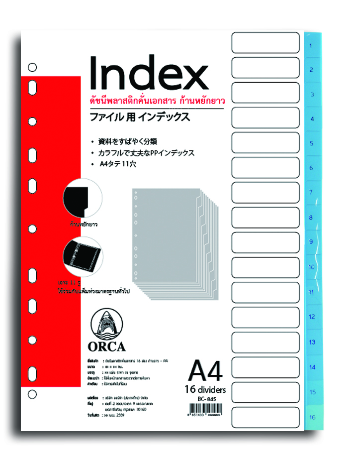 ProductID 0329034 สถานะสินค้า สินค้าพร้อมส่ง อินเด็กซ์พลาสติกทึบ ออร์ก้า, 16 หยัก พิมพ์ 1-16 BC-845 ราคาพิเศษสำหรับสมาชิกหรือติดต่อเรา Be the first to review this product ฿43.00 ราคาไม่รวมภาษี จำนวน/Quantity: ชุด Add to cart Email a friend Add to compare list Add to wishlist DetailsExisting reviews ผลิตจากพลาสติก PP คุณภาพดีทนทานกันน้ำได้ ด้านข้างมี 11 รูมาตรฐาน ใช้ได้กับแฟ้มทุกชนิด ช่วยจัดเก็บเอกสารให้เป็นระเบียบด้วยตัวเลข 1-16 สะดวกต่อการค้นหา คละสี ขนาด(22.3x29.7) A4 Be the first to review this product