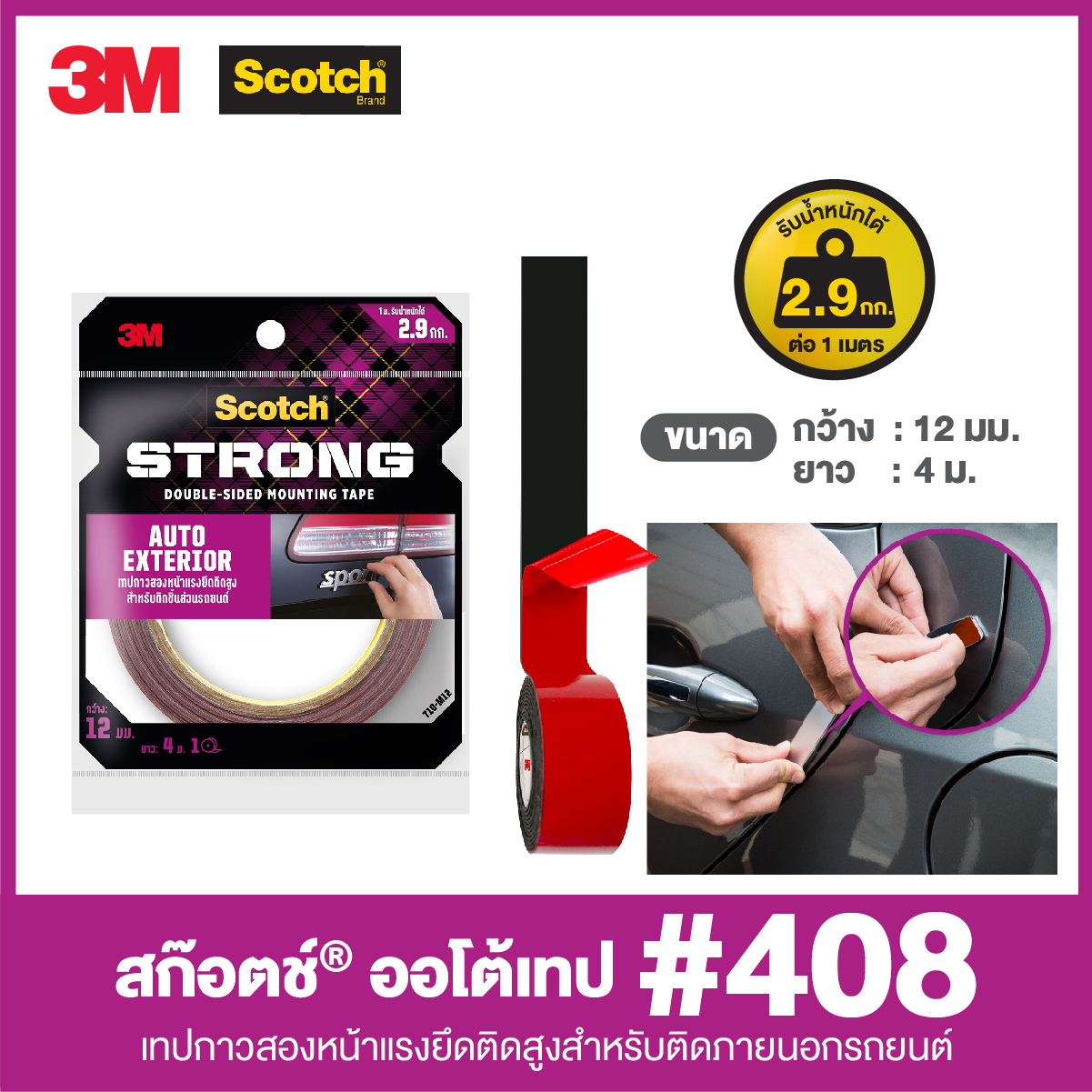 ProductID 0522053 สถานะสินค้า สินค้าพร้อมส่ง สก๊อตช์ ออโต้เทป 408 เทปโฟม2หน้าแรงยึดติดสูง สำหรับรถยนต์, 0.5นิ้วX4ม. ราคาพิเศษสำหรับสมาชิกหรือติดต่อเรา Be the first to review this product ฿155.00 ราคาไม่รวมภาษี จำนวน/Quantity: ม้วน Add to cart Email a friend Add to compare list Add to wishlist DetailsExisting reviews เนื้อเทปกาวอะครีลิค ชนิดให้แรงยึดติดสูงพิเศษ เนื้อเหนียว เนื้อเทปมีความยืดหยุ่น ทนต่อสภาพอากาศแวดล้อม ใช้สำหรับติดชิ้นส่วนประดับยนต์ เหมาะสำหรับพื้นผิวเรียบและพื้นผิวสะอาดภายนอกรถยนต์ รับแรงในแนวดิ่งได้ดี เนื้อเทปสีเทา เนื้อโฟมหนา 0.8 มม. การรับน้ำหนัก 1 เมตร รับน้ำหนักได้ 2.9 กก. และ 1 กก./ความยาวเทป 34.4 ซม. เทปหน้ากว้าง 12 มม. Be the first to review this product