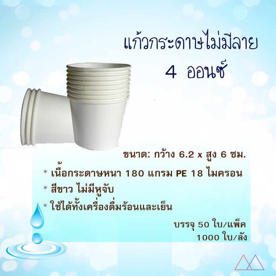 ProductID 0820012 สถานะสินค้า สินค้าพร้อมส่ง แก้วกระดาษแบบไม่มีหูจับ ไม่มีลาย 4 ออนซ์ ราคาพิเศษสำหรับสมาชิกหรือติดต่อเรา Be the first to review this product ฿525.00 ราคาไม่รวมภาษี จำนวน/Quantity: ลัง Add to cart Email a friend Add to compare list Add to wishlist DetailsExisting reviews อื่นๆ เนื้อกระดาษ 220 แกรม PE 18 ไมคอน ขนาด กว้าง x สูง (6.5ซม.X6 ซม.) 1 แถว มี 50 ใบ 1 กล่อง มี 50 แพ็ค 1 กล่อง มี 1000 ใบ สีขาวไม่มีลาย Be the first to review this product