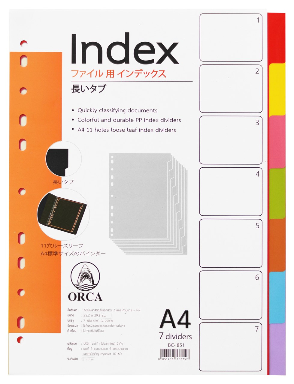 ProductID 0329096 สถานะสินค้า สินค้าหมดชั่วคราว อินเด็กซ์พลาสติกทึบ ออร์ก้า, ก้านหยักยาว 7สี, BC-851 ราคาพิเศษสำหรับสมาชิกหรือติดต่อเรา Be the first to review this product ฿40.00 ราคาไม่รวมภาษี จำนวน/Quantity: ชุด Add to cart Email a friend Add to compare list Add to wishlist DetailsExisting reviews ผลิตจากพลาสติก PP คุณภาพดีทนทานกันน้ำได้ ด้านข้างมี 11 รูมาตรฐาน ใช้ได้กับแฟ้มทุกชนิด ช่วยจัดเก็บเอกสารให้เป็นระเบียบ สะดวกต่อการค้นหา คละสี ขนาด(22.3x29.7) A4 Be the first to review this product