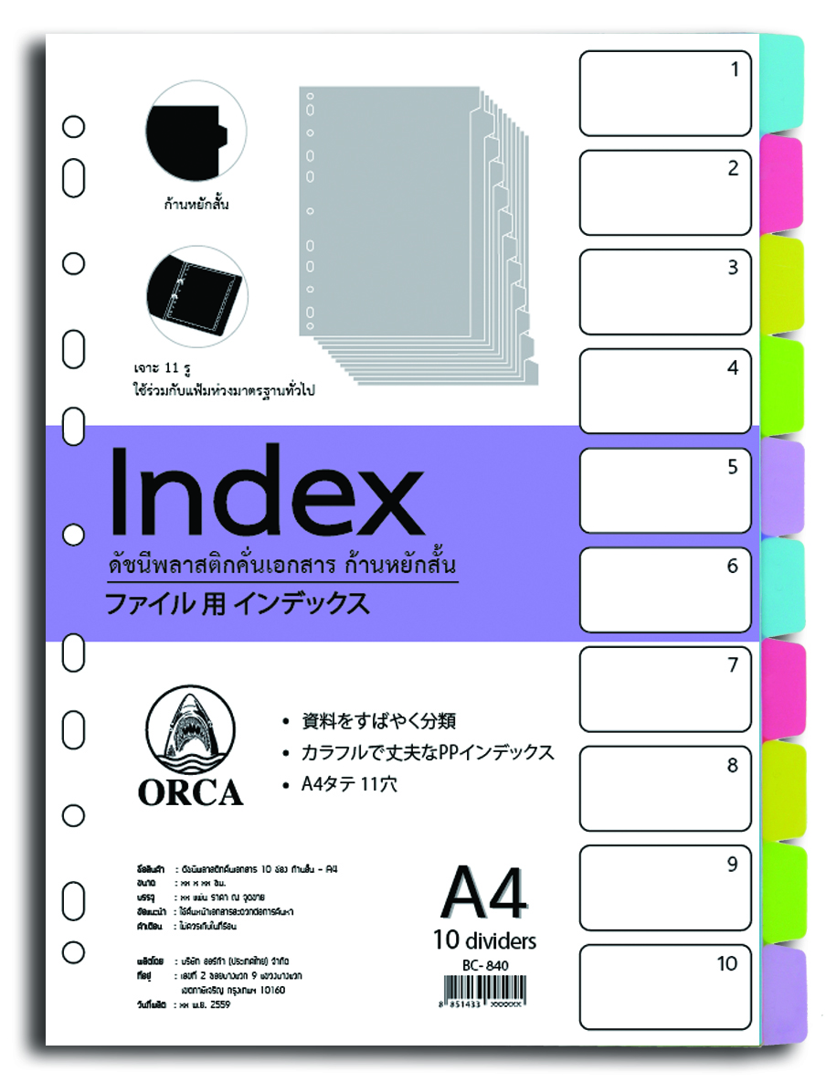 ProductID 0329091 สถานะสินค้า สินค้าพร้อมส่ง อินเด็กซ์พลาสติกทึบ ออร์ก้า,10ช่อง คละสี, BC-840 (หยักสั้น) ราคาพิเศษสำหรับสมาชิกหรือติดต่อเรา Be the first to review this product ฿43.00 ราคาไม่รวมภาษี จำนวน/Quantity: ชุด Add to cart Email a friend Add to compare list Add to wishlist DetailsExisting reviews ผลิตจากพลาสติก PP คุณภาพดีทนทานกันน้ำได้ ด้านข้างมี 11 รูมาตรฐาน ใช้ได้กับแฟ้มทุกชนิด ช่วยจัดเก็บเอกสารให้เป็นระเบียบสะดวกต่อการค้นหา คละสี ขนาด(22.3x29.7) A4 Be the first to review this product Customers who bought this item also bought ตราช้างแฟ้มสันกว้าง 120A4 ดำ ฿68.00 ลวดเย็บกระดาษ MAX 10-1M ฿8.25 แฟ้ม2ห่วงปกแข็งA4 ตราม้า H-335 ดำ ฿50.00 ตราช้างอินเด็กซ์พลาสติกแถบ 1-12 #520 ฿40.00 แฟ้มสันกว้าง3นิ้วA4 ตราม้า H-403 ดำ ฿348.00 แฟ้มเจาะ 300 แกรม A4, ชมพู ฿8.50 < >